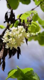 The Judas tree is a monoecious species with flowers containing both male and female reproductive organs. In the white variety of the species (Cercis siliquastrum f. albida), the flowers are white, 1–2 cm in length, and typically emerge directly from the trunk and branches. The flowering period lasts from March to April.