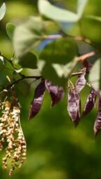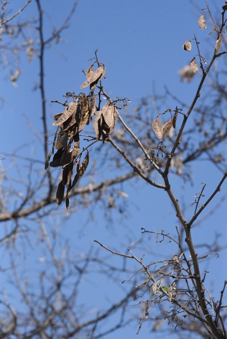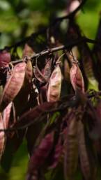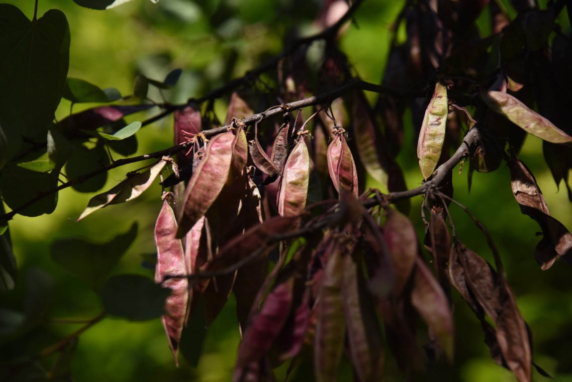 The fruits of the species are pods, initially green, that upon maturation become dark brown. They remain on the tree for quite a long time, as the seeds they contain ripen early in the autumn.