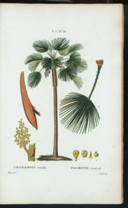 - Webber, J. (1788). Krakatoa: Fan palm (Chamaerops humilis L.) with surrounding tropical forest and native woman [Coloured soft-ground etching]. Wellcome Collection, London, United Kingdom. After illustration in A voyage to the Pacific Ocean by James King (1785).