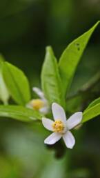 The flowers of the species are axillary and hermaphroditic, meaning they possess male and female reproductive organs. They are large, white, and particularly aromatic. Flowering takes place from mid-Spring up to the beginning of Summer. The fruits of the trees are berries of a special form called hesperidia. They have a thick and rough peel, which is green while the fruits are unripe and acquires a dark orange color upon maturation. The ripening period of the fruits differs depending on the variety. Each fruit contains 10-15 seeds.