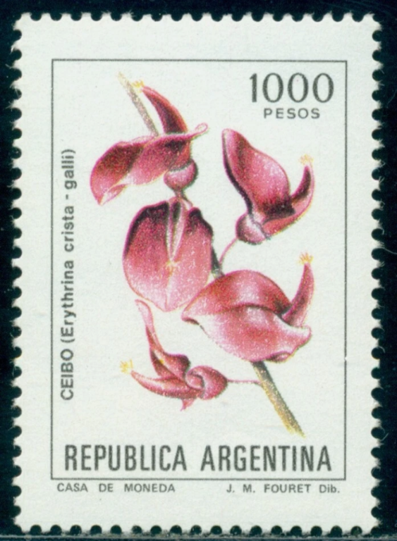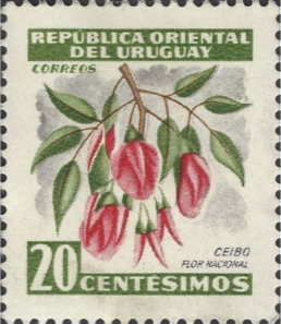 The species is frequently mentioned in traditional songs and poems of Argentine culture. According to the tradition of the Guarani tribe of Argentina, Anahí was an indigenous girl, daughter of the tribe’s chief, who passionately loved her land, wandered alone in the forests, and knew every corner of the place, all the birds and flowers. One day Spanish invaders arrived in her tribe’s lands; she defended herself and was captured to be executed by burning at the stake. Tied to a tree on the riverbank, they piled wood at her feet and set it on fire. To the surprise of those watching the scene, Anahí, with her beautiful voice, began to sing a song asking her God to protect their land, the forests, the rivers, and her tribe. However, in the night, her body became the trunk of the Coral Tree and her ashes transformed into its vibrant red flower, adorned with beautiful hanging clusters of red young flowers, as red as the flames that had consumed her, immortalizing her spirit and sacrifice forever. Since then, the flower of the plant is called Anahí. In 2004, Paraguay released a postage stamp series themed after the legend of Anahí. Furthermore, the plant itself was depicted on Uruguayan stamps in 1954, designated as the national flower, and was subsequently featured in similar Argentinian issues.