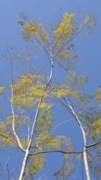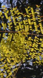 Deciduous tree 5-15 m in height. It has a grey-brown trunk that can reach 45 cm in diameter and thin, red-brown branches. The leaves of the species are green and compound, with each reaching up to 10 cm in length, possessing 13-41 elliptical leaflets, 3-12 mm long and 1-4 mm wide. The root system is particularly strong and extensive horizontally, a trait that renders the trees a likely cause for the destruction of sidewalks and roads.
