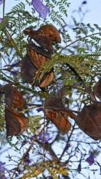 The flowers of the species are hermaphroditic of impressive blue-violet color, organized in large panicle inflorescences. The flowering period lasts during the Spring months up to the beginning of Summer. From the fertilized flowers, round, flat, woody capsules of 2.5 to 8 cm in diameter arise, from which numerous winged brown seeds are released.
