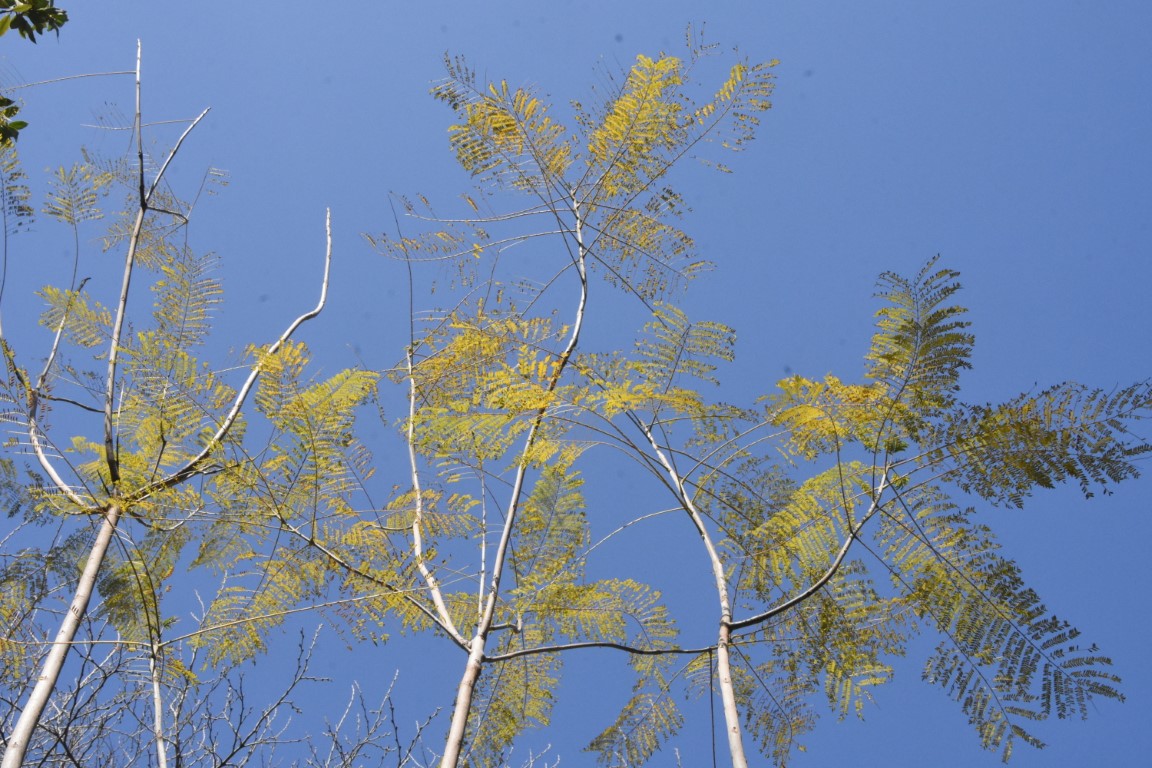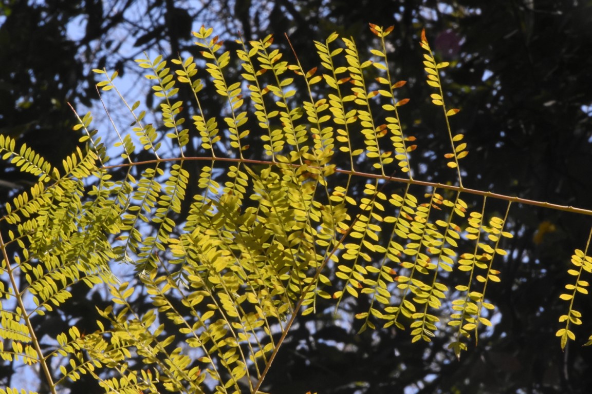 Deciduous tree 5-15 m in height. It has a grey-brown trunk that can reach 45 cm in diameter and thin, red-brown branches. The leaves of the species are green and compound, with each reaching up to 10 cm in length, possessing 13-41 elliptical leaflets, 3-12 mm long and 1-4 mm wide. The root system is particularly strong and extensive horizontally, a trait that renders the trees a likely cause for the destruction of sidewalks and roads.