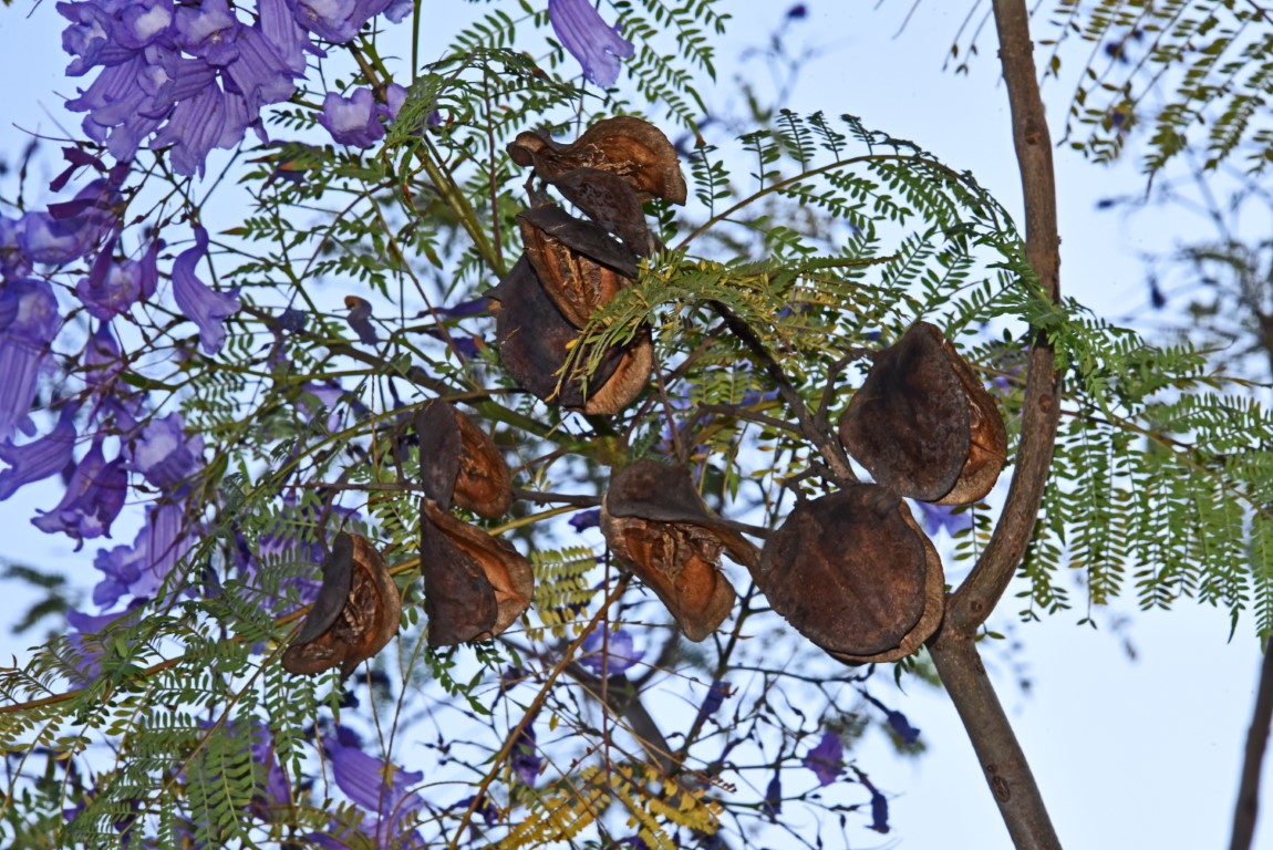 The first recording of the genus Jacaranda was made by the naturalist Georg Marcgraf in 1648 in his work “Historia Naturalis Brasiliae”. The genus belongs to the family Bignoniaceae and includes 49 species found in tropical and subtropical regions worldwide. Trees of the genus are often the first to colonize an area and grow rapidly in open spaces or forest gaps, with seed dispersal mainly via wind. The botanist Allan Cunningham introduced the species Jacaranda mimosifolia to Europe in 1818, sending specimens from Brazil to the Royal Botanic Gardens, Kew, in London. Although older sources give the species the name Jacaranda acutifolia, it is now classified as Jacaranda mimosifolia, with the two names being treated as synonyms. Rarely are the two species considered different, with their differences lying in the geographical location of origin, as the species Jacaranda acutifolia originates from Peru.