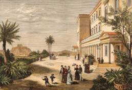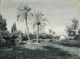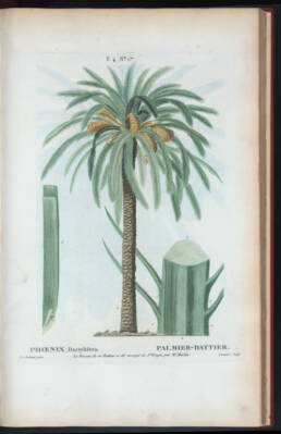 This tradition endured into Late Antiquity and the Medieval period. Vast palm groves are described in Mesopotamia, with Procopius noting regions where no vegetation grew except for palms, as if the earth had selected a single species to nurture. In Christian tradition, during Jesus’ entry into Jerusalem, the populace welcomed him with palm branches, recognizing him as king and savior. Similarly, in the Book of Revelation, “a multitude from every nation stands before the throne of God, holding palms of victory”. The plant’s fronds continue to be used during Palm Sunday in the Christian liturgy. The tree was extensively cultivated as a primary food source in ancient Israel, the cradle of Judaism and later Christianity; consequently, dates are mentioned more than 50 times in the Bible and 20 times in the Quran. In modern Greek history, Queen Amalia brought three palm trees from the island of Ios to decorate the exterior of the National Garden in Athens. Although these palms no longer survive today, they were preserved in an engraving dating to 1877. Queen Amalia herself wished to be remembered as the “Queen of the Palms”. In fact, as she describes in the letters sent to her father, she had even bestowed names upon some of them (recording, for instance, “Aslauga”—a name that most likely refers to the mythical Queen of Scandinavia from the work of Friedrich de la Motte Fouqué, a figure who embodies a blend of nobility and solitude.