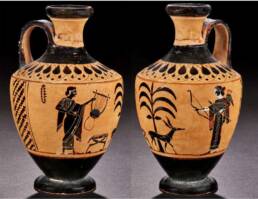 Fossil records indicate that the date palm has existed for at least 50 million years. Archaeological evidence further attests to its cultivation by a Neolithic civilization in western Pakistan circa 7000 BCE, as well as in Arabia by 6000 BCE. In Euripides’ works, Leto gives birth to Apollo and Artemis beneath the branches of a palm and a laurel tree, which emerged as sacred omens of the divine nativity. In the Odyssey, during his encounter with Nausicaa, Odysseus likens the young maiden to the upright shoot of a palm tree he once beheld rising beside the altar of Apollo on the island of Delos. According to Herodotus, palm trees and various other fruiting and non-fruiting trees were planted on islands housing Apollonian sanctuaries, while inhabitants utilized the palm even for the creation of garments. Pausanias describes an impressive bronze palm tree at Delphi, which supported a golden statue of the goddess Athena—a votive offering dedicated by the Athenians following their decisive double victory at the Battle of Eurymedon (~466 BCE) against the Persians.