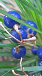 Τα άνθη βρίσκονται σε ταξιανθία τύπου βότρυος. Κάθε ταξιανθία έχει 10 με 15 άνθη, 1 cm σε διάμετρο, σε σχήμα καμπάνας. Τα άνθη έχουν 6 πέταλα και χρώμα από απαλό ιώδες έως λευκό, μερικώς κρυμμένα μέσα στο φύλλωμα. Συγκρατούνται σε έναν μίσχο μήκους 10 έως 35 cm. Οι καρποί του μοιάζουν με μούρα, έχουν χρώμα ιώδες και πλάτος μικρότερο από 1 cm. Κάθε καρπός φέρει έως και 6 σπέρματα που είναι στρογγυλά έως ελλειπτικά, μήκους 4 mm.