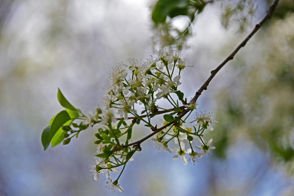 Είναι φυλλοβόλος θάμνος ή μικρό δέντρο, ύψους 2 έως 10 m (σπάνια έως 12 m), με κορμό που μπορεί να φθάσει σε διάμετρο τα 40 cm. Ο φλοιός του είναι γκριζοκάστανος, με φακοειδείς κηλίδες στα νεαρά κλαδιά, ενώ στα παλαιότερα τμήματα εμφανίζει ρηχά σκισίματα. Τα φύλλα είναι γυαλιστερά πράσινα, έχουν αδένες, φύονται κατ’ εναλλαγήν και έχουν μήκος 1,5 με 7 cm και πλάτος 1 με 4 cm. Το έλασμα είναι πλατύ ωοειδές έως σχεδόν καρδιοειδές με οξεία κορυφή, στρογγυλεμένη έως ελαφρά καρδιοειδή βάση και πριονωτό κράσπεδο. Ο μίσχος έχει μήκος 0,5 με 2 cm και συνήθως φέρει 1 ή 2 νεκτάρια, ενώ τα μικρά παράφυλλα αποπίπτουν νωρίς.