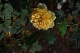 Η ποικιλία “Les pas du paradis” είναι τριανταφυλλιά παλαιού τύπου με άνθη σε σχήμα κούπας, κίτρινου χρώματος με μπρούτζινο κέντρο που τονίζεται στα κατώτερα πέταλα με απαλό ροζ. Τα άνθη έχουν διάμετρο 8 με 12 εκατοστά και έντονο άρωμα. Το φυτό έχει ορθή και πλάγια ανάπτυξη με ύψος έως 125 εκ. και πλάτος έως 75 εκ.