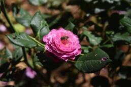 Παράλληλα με τη θρησκευτική του διάσταση, το ρόδο πρωταγωνιστεί και στις περιγραφές των λογίων, αποτυπώνοντας την ομορφιά του βυζαντινού τοπίου. Στην περιγραφή του Προκοπίου, στα πρώτα βυζαντινά χρόνια, η φύση εμφανίζεται να ανατρέπει τις εποχές όταν τα ρόδα ανθίζουν εκτός χρόνου, σε μια εποχή με «μεγάλη ξηρασία και ζέστη σαν μεσοκαλόκαιρο», η “Ελληνική Ανθολογία” περιγράφει τα λιβάδια που «γελούν όταν τα ρόδα ανοίγουν» και χαρακτηρίζει τον Μάιο ως «μητέρα των ρόδων».
