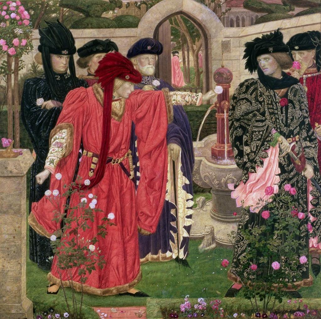 Αυτός ο πολυδιάστατος συμβολισμός πέρασε από τον καμβά στην ιστορία και τη δραματουργία, με αποκορύφωμα τον “Πόλεμο των Ρόδων”. Το λευκό τριαντάφυλλο ως έμβλημα του οίκου της Υόρκης και το κόκκινο του οίκου του Λάνκαστερ ενέπνευσαν τον Σαίξπηρ να εντάξει το 1601 μια εμβληματική σκηνή στο έργο του “Ερρίκος ΣΤ’ (Μέρος Α’)”. Εκεί, η πολιτική πόλωση της εποχής μετουσιώνεται συμβολικά μέσα από την επιλογή τριαντάφυλλων διαφορετικού χρώματος από τους υποστηρικτές της κάθε παράταξης.