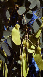 Αναπαράγεται κυρίως με σπέρματα και παρουσιάζει εντυπωσιακή ανθοφορία και καρποφορία. Τα άνθη της εμφανίζονται στα τέλη της άνοιξης έως το καλοκαίρι και είναι πολυάριθμα, με ζωηρό κίτρινο έως κιτρινοπορτοκαλί χρώμα. Σχηματίζονται σε αραιές, μακριές βοτρυώδεις ταξιανθίες, τόσο στις κορυφές όσο και στις μασχάλες των κλάδων. Τα άνθη έχουν χαρακτηριστική πεταλοειδή μορφή, με καμπανοειδή κάλυκα και πέταλα μήκους περίπου 2 cm. Μετά την άνθιση, το φυτό παράγει άφθονους καρπούς σε μορφή πτερωτού αχαινίου τύπου “σαμάριο” (samara), που περιέχει ένα έως τρία σπέρματα στη βάση του. Οι καρποί αυτοί, αρχικά κιτρινοπράσινοι και στη συνέχεια φαιοκαστανοί, παραμένουν για μεγάλο διάστημα στο δέντρο και, όταν ωριμάσουν, αποσπώνται περιστρεφόμενοι σαν “ελικόπτερα”, επιτρέποντας στη βαρύτητα και στον άνεμο να τους διασπείρουν σε μεγάλες αποστάσεις. Τα σπέρματα φυτρώνουν εύκολα, ιδιαίτερα τον χειμώνα όταν υπάρχει επαρκής υγρασία, και τα νεαρά φυτά αναπτύσσονται ταχύτατα, εξασφαλίζοντας την ευρεία εξάπλωση του είδους σε ποικίλες συνθήκες.
