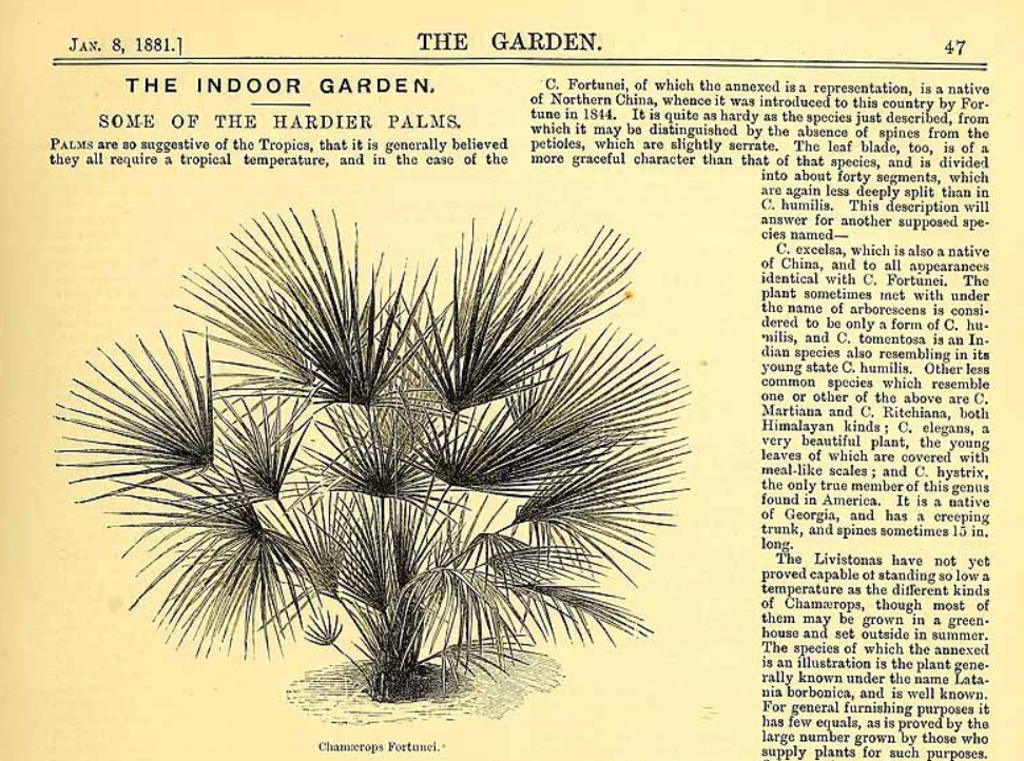 Το είδος απεικονίζεται σε ορισμένες παλαιές βοτανικές εικονογραφήσεις και με προηγούμενο επιστημονικό του όνομα ως Chamaerops fortunei.