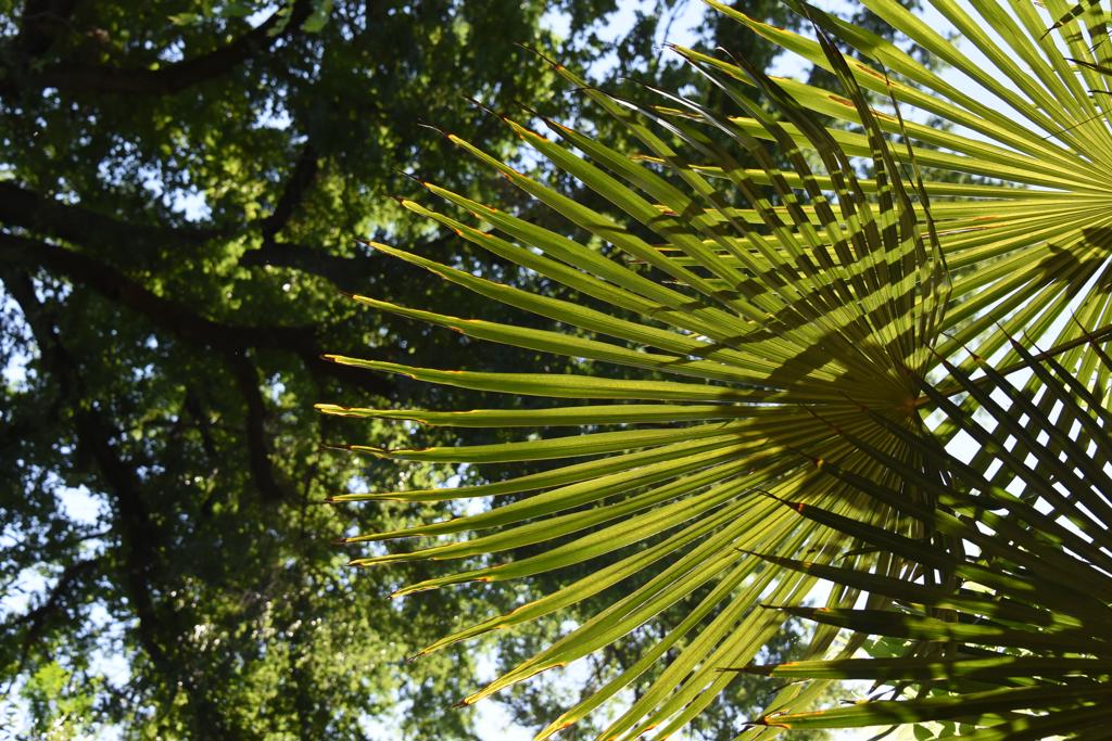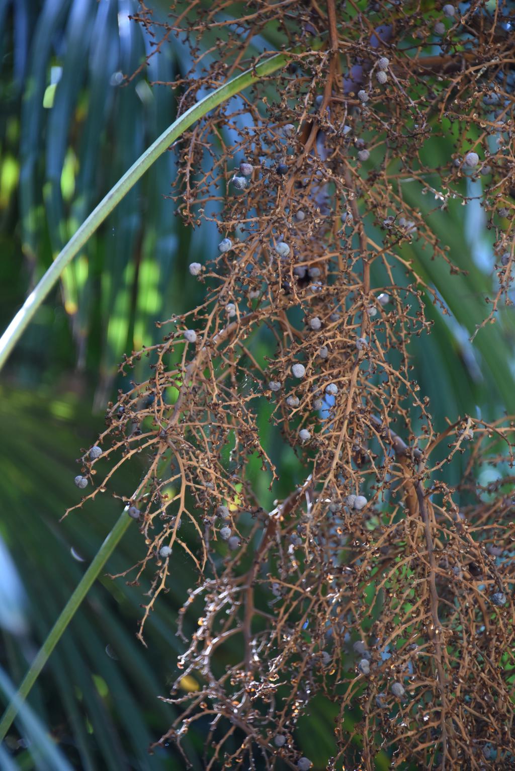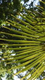 Αείφυλλο, μονοστέλεχο είδος με όρθιο, λεπτό και ινώδη βλαστό. Αναπτύσσεται συνήθως σε ύψος 6 έως 12 m (σπανιότερα έως 13 m), με κορμό διαμέτρου 15–30 cm, ο οποίος παραμένει καλυμμένος από πυκνές, καφέ ίνες που προέρχονται από τις βάσεις των παλαιών φύλλων. Σε πολύ ώριμα άτομα οι ίνες αυτές αποπίπτουν, αποκαλύπτοντας λείο, δακτυλιωτό φλοιό. Το φύλλωμα σχηματίζει συμμετρική στρογγυλή κόμη διαμέτρου 2,5 με 3 m με παλαμοειδή φύλλα μήκους έως 1,5 με 2 m. Τα φύλλα βρίσκονται σε μακριούς μίσχους (60 – 100 cm) με λεπτά οδοντωτά άκρα και φέρουν 30 έως 50 λογχοειδή φυλλάρια μήκους 60 με 90 cm, τα οποία διατάσσονται ακτινωτά, σχηματίζοντας χαρακτηριστική βεντάλια. Η άνω επιφάνεια των φύλλων είναι βαθιά πράσινη, ενώ η κάτω έχει πρασινοαργυρό χρώμα, δίνοντας στο φυτό λαμπερή όψη. Οι κορυφές των φυλλαρίων μπορεί να είναι άκαμπτες ή ελαφρώς κρεμάμενες, προσδίδοντας μεταβλητότητα στην όψη του φυτού. Ο κορμός είναι συνήθως ελαφρώς στενότερος στη βάση και φέρει δακτυλιωτή υφή. Το ριζικό του σύστημα είναι ινώδες και επιφανειακό, επιτρέποντας καλή σταθερότητα σε περιοχές με φτωχά εδάφη.